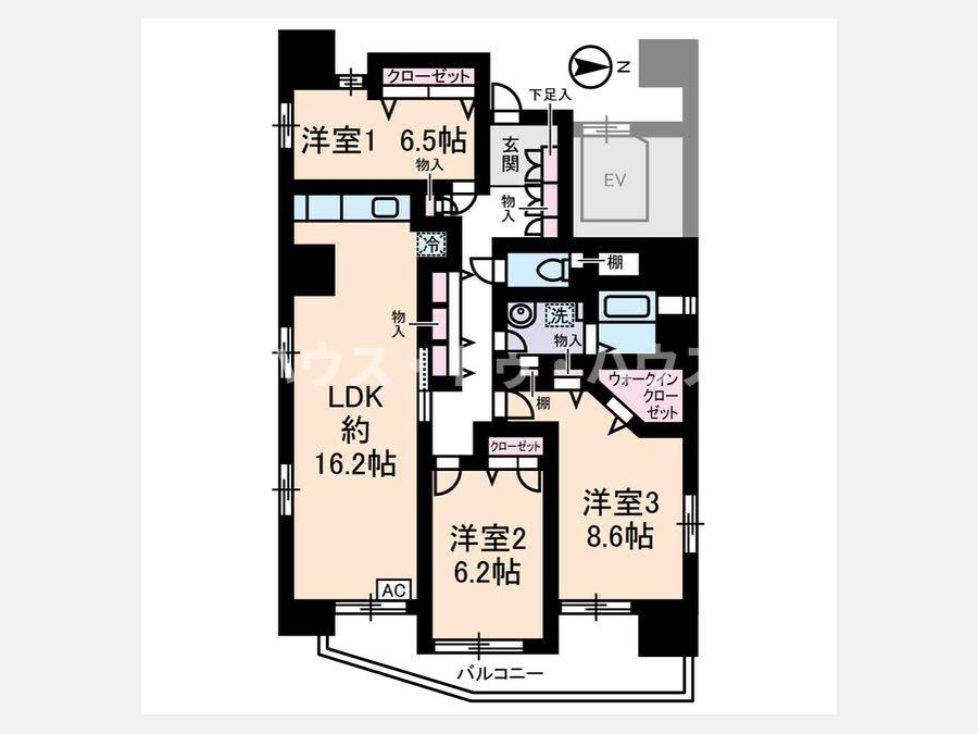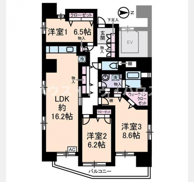 洋室 8.6 畳 1 室 LDK 16.2 畳 1 室 |