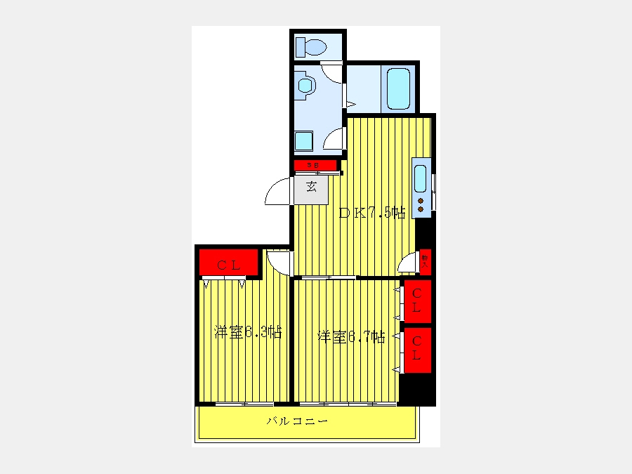 DK 7.5 畳 洋室 6.7 畳 洋室 6.3 畳 |