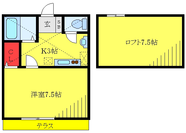 洋室 7.5 畳 K 3 畳 ロフト7.5帖 |