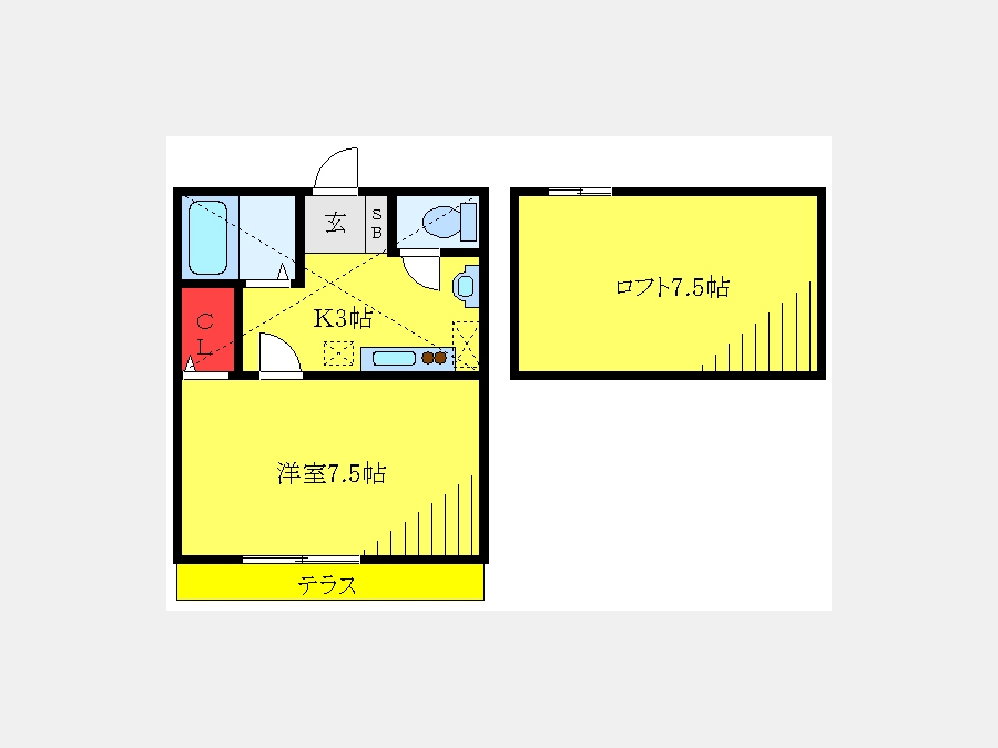 洋室 7.5 畳 K 3 畳 ロフト7.5帖 |