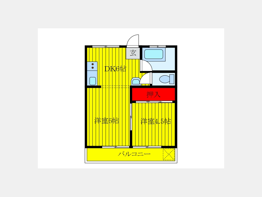 DK 6 畳 和室 4.5 畳 洋室 6 畳 |