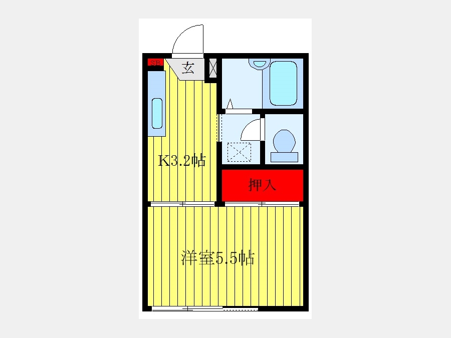 洋室 5.5 畳 2 階 1 室 K 3.2 畳 2 階 1 室 |
