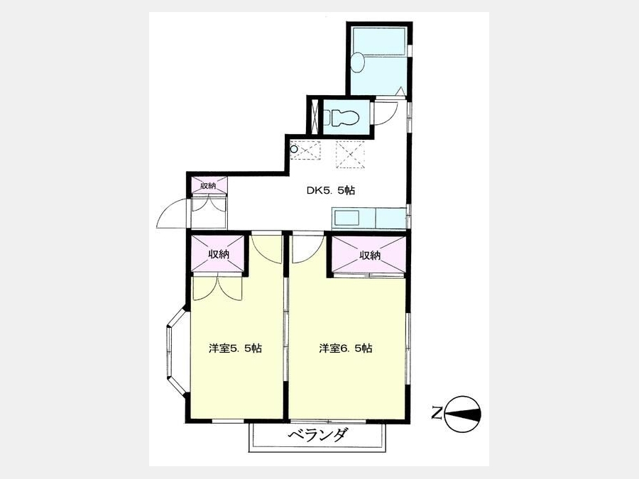 洋室 5.5 畳 DK 5.5 畳 洋室 6.5 畳 |