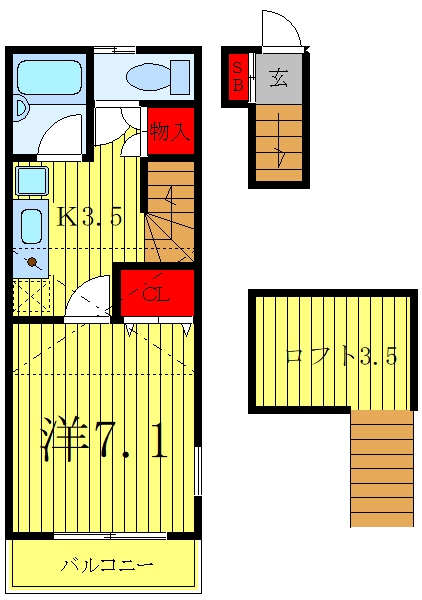 洋室 7.1 畳 K 3.5 畳 ロフト3.5帖 |