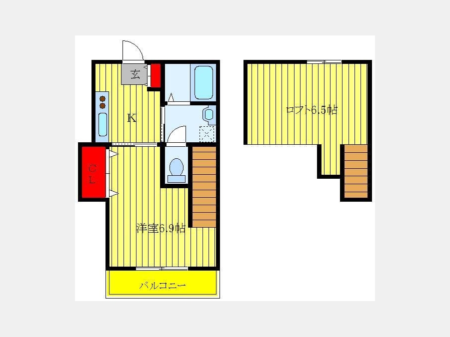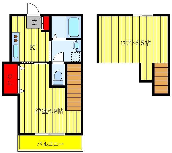 洋室 6.9 畳 K 3 畳 ロフト6.5帖 |