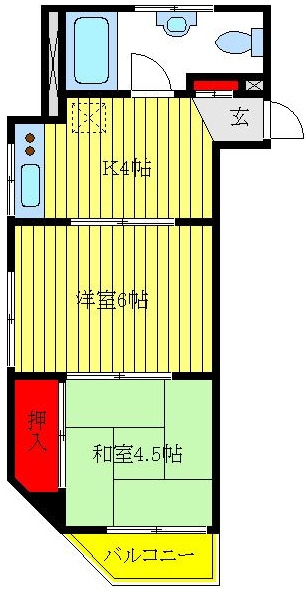 洋室 6 畳 和室 4.5 畳 K 4 畳 |