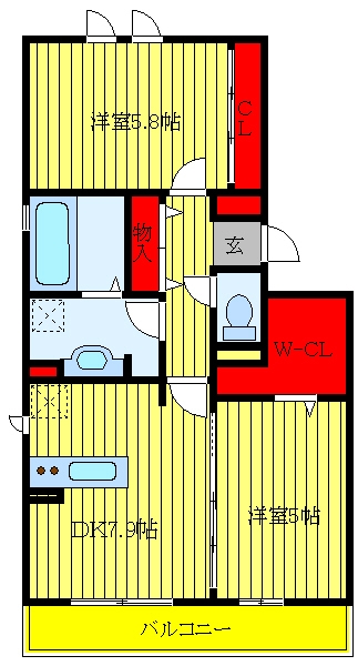 DK 7.9 畳 洋室 5.8 畳 洋室 5 畳 |