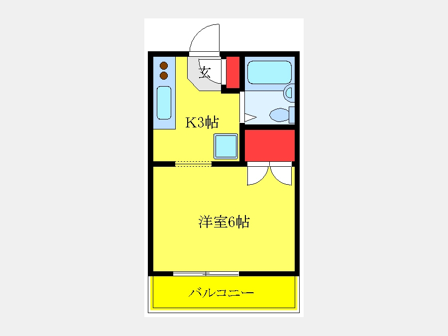 洋室 6 畳 1 室 K 3 畳 1 室 |