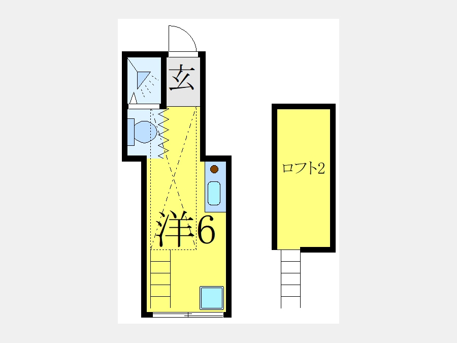 | 設備・条件 | 1階、温水洗浄便座、室内洗濯機置き場、ロフト付き、エアコン、礼金なし、敷金なし、TVドアホン、駐輪場、都市ガス | ||