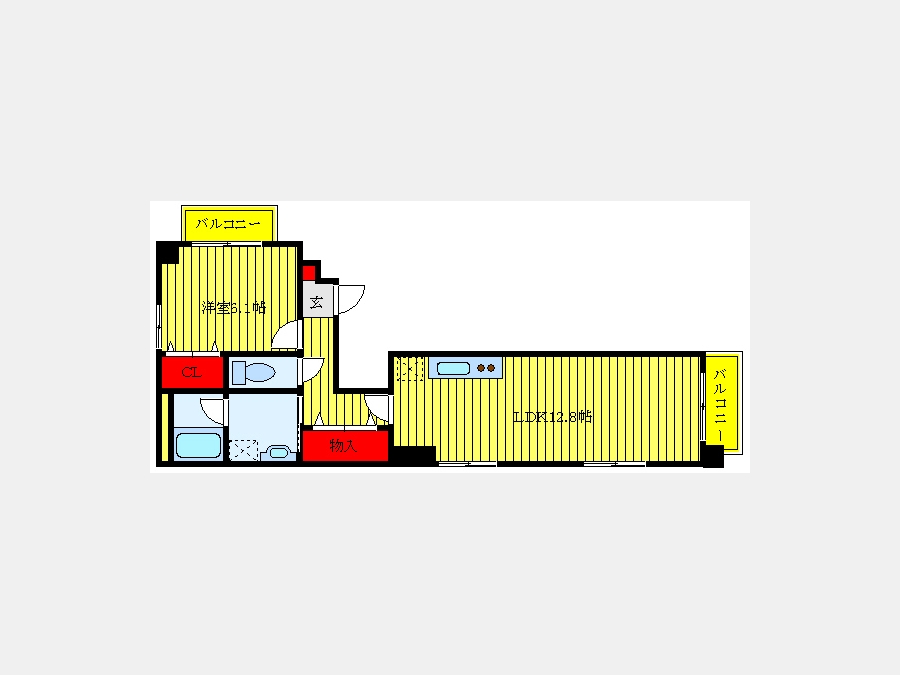 洋室 6.1 畳 LDK 12.8 畳 |
