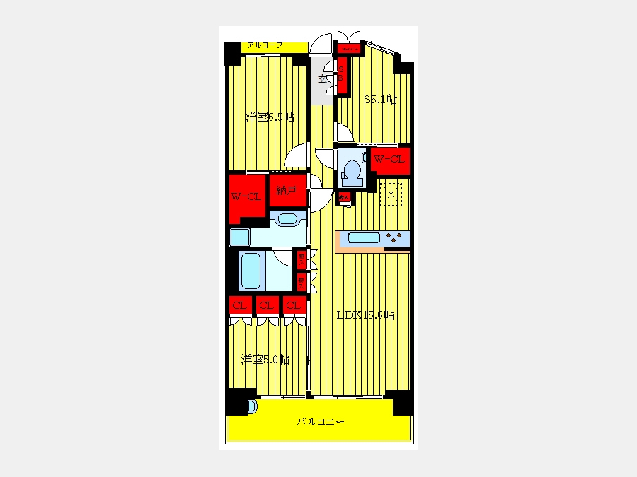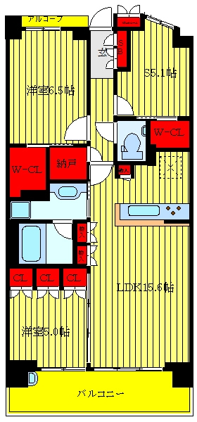 LDK 15.6 畳 洋室 6.5 畳 洋室 5.1 畳 洋室 5 畳 |