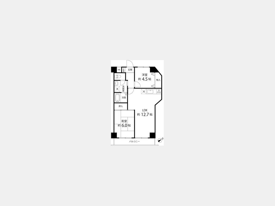 LDK 12.7 畳 洋室 4.5 畳 和室 6 畳 |