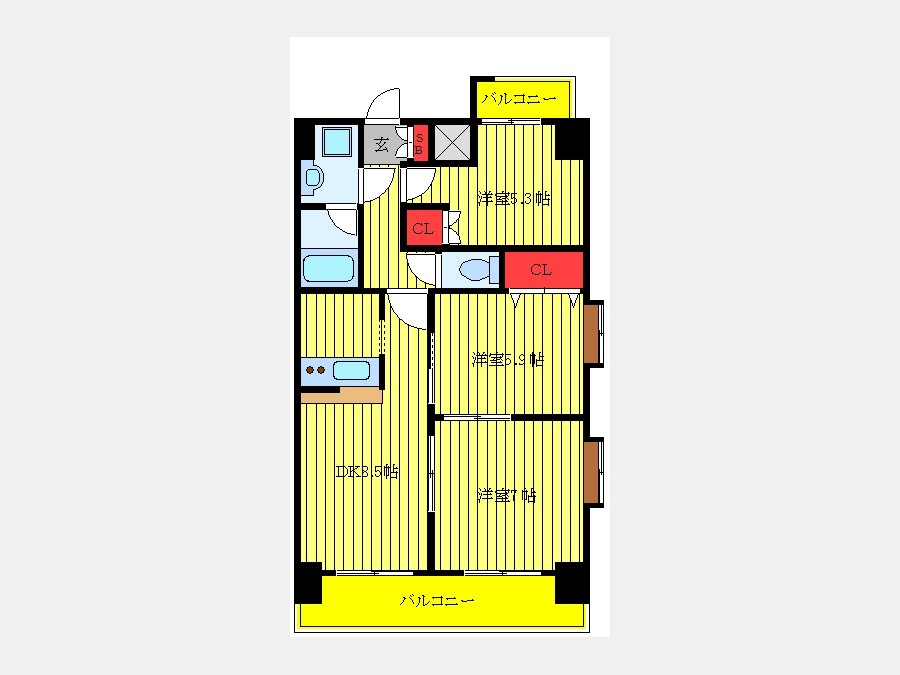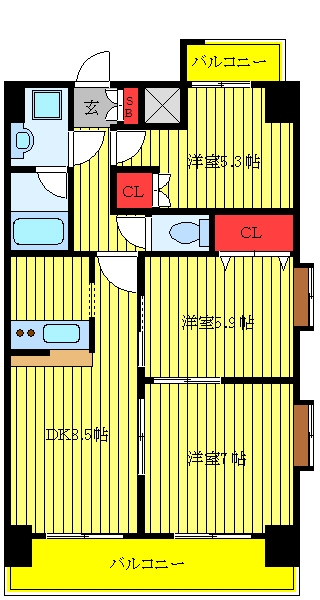DK 8.5 畳 洋室 5.3 畳 洋室 5.9 畳 洋室 7 畳 |