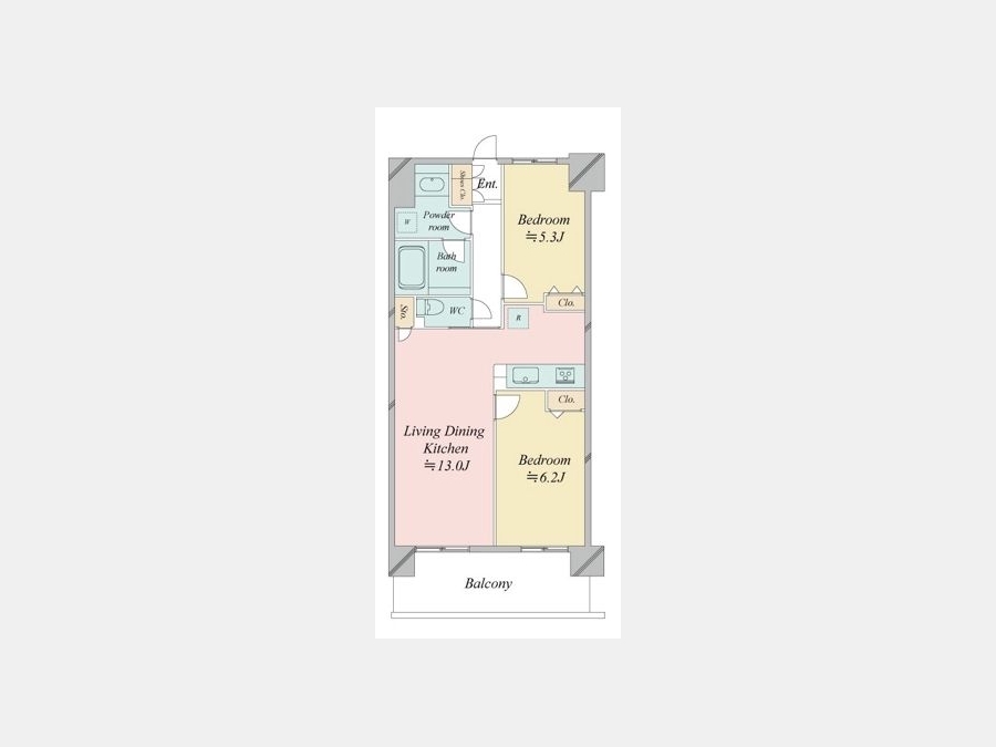 LDK 13 畳 洋室 6.2 畳 洋室 5.3 畳 |
