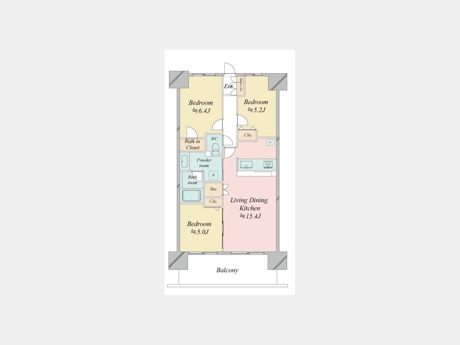 LDK 15.4 畳 洋室 6.4 畳 洋室 5.2 畳 洋室 5 畳 |
