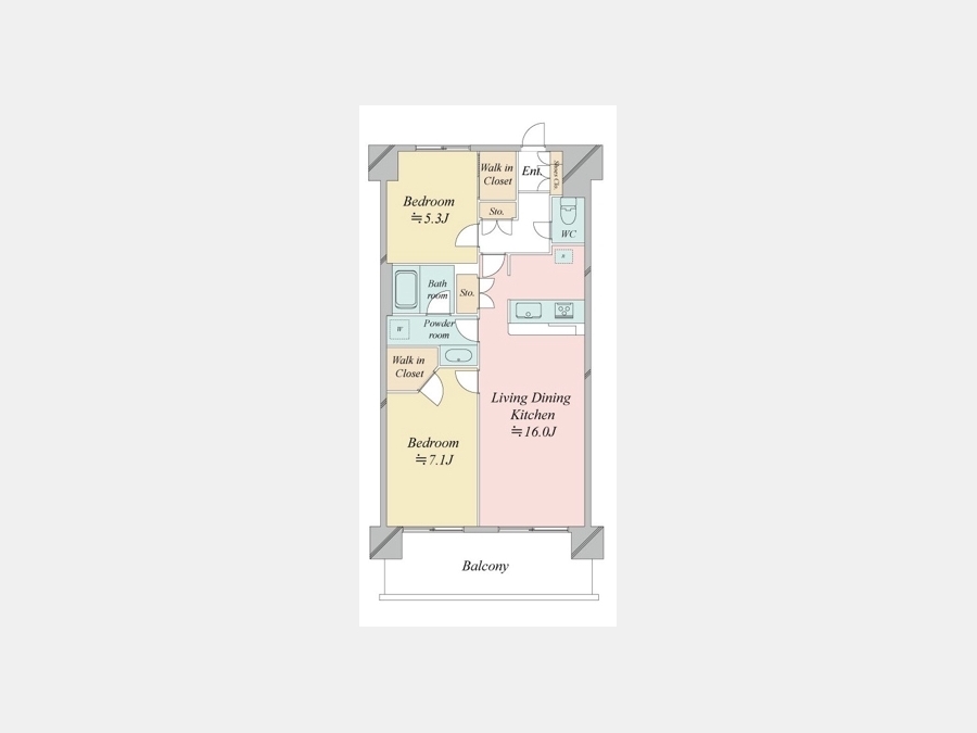 LDK 16 畳 洋室 7.1 畳 洋室 5.3 畳 |