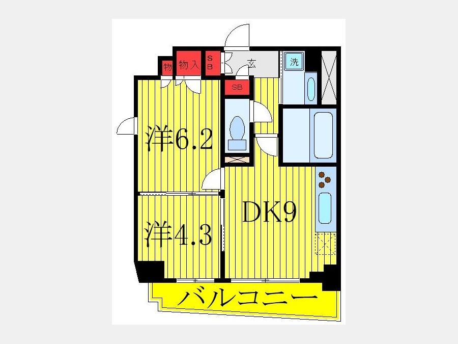 洋室 6.2 畳 1 室 洋室 4.3 畳 1 室 DK 9 畳 1 室 |