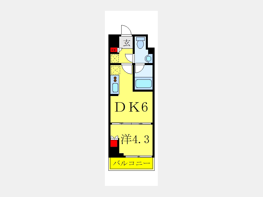 洋室 4.3 畳 1 室 DK 6 畳 1 室 |