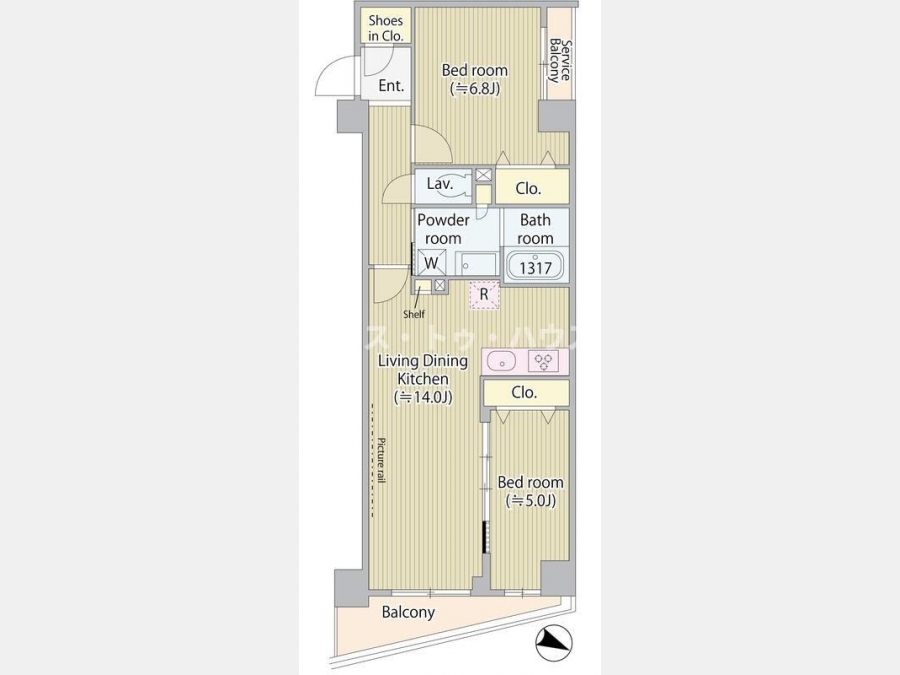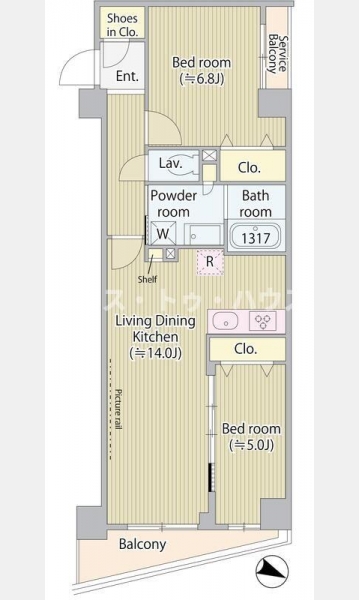 洋室 6.8 畳 1 室 洋室 5 畳 1 室 LDK 14 畳 1 室 |