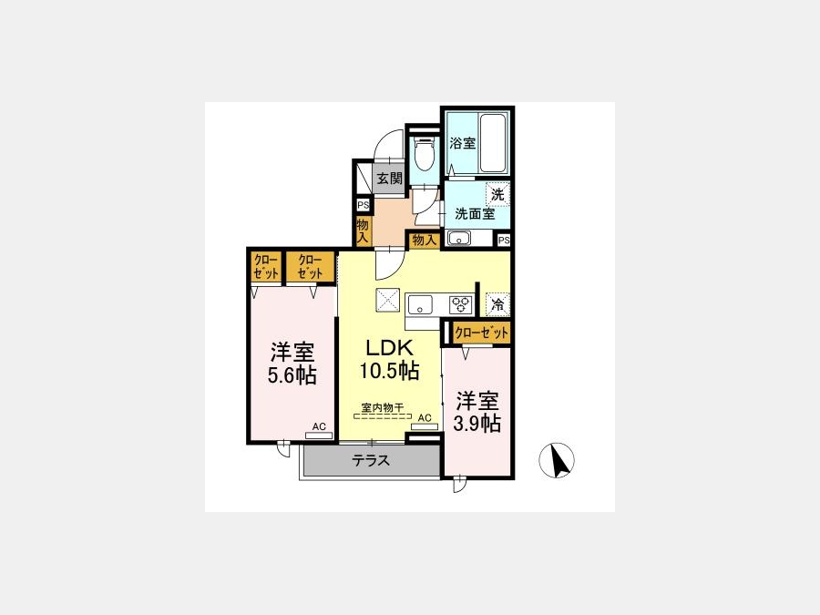 洋室 5.6 畳 洋室 3.9 畳 LDK 10.5 畳 |