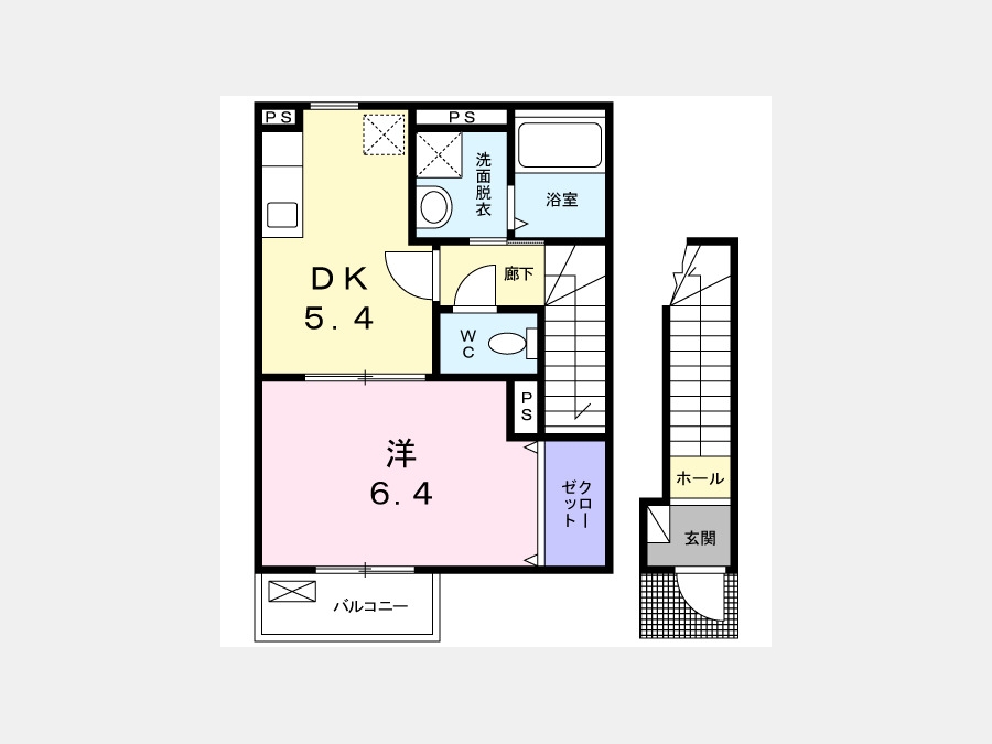 DK 5.4 畳 洋室 6.4 畳 |