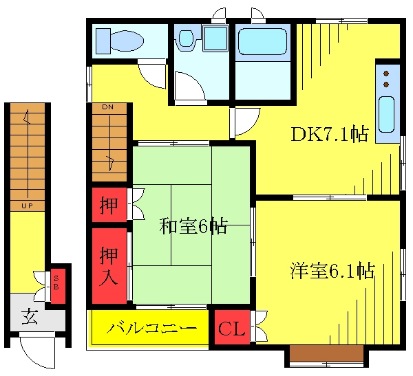 洋室 6.1 畳 和室 6 畳 DK 7.1 畳 |