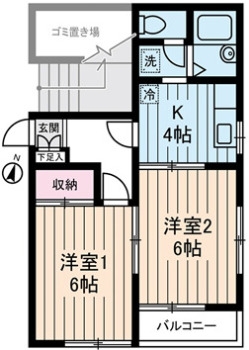 洋室 6 畳 2 室 K 4 畳 1 室 |