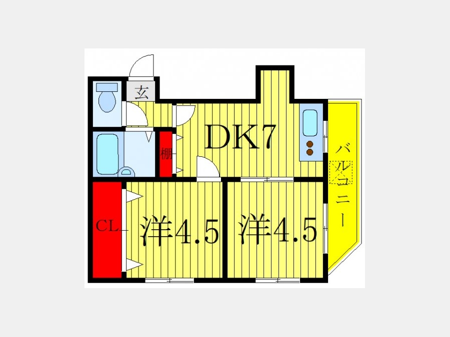 洋室 4.5 畳 洋室 4.5 畳 DK 7 畳 |