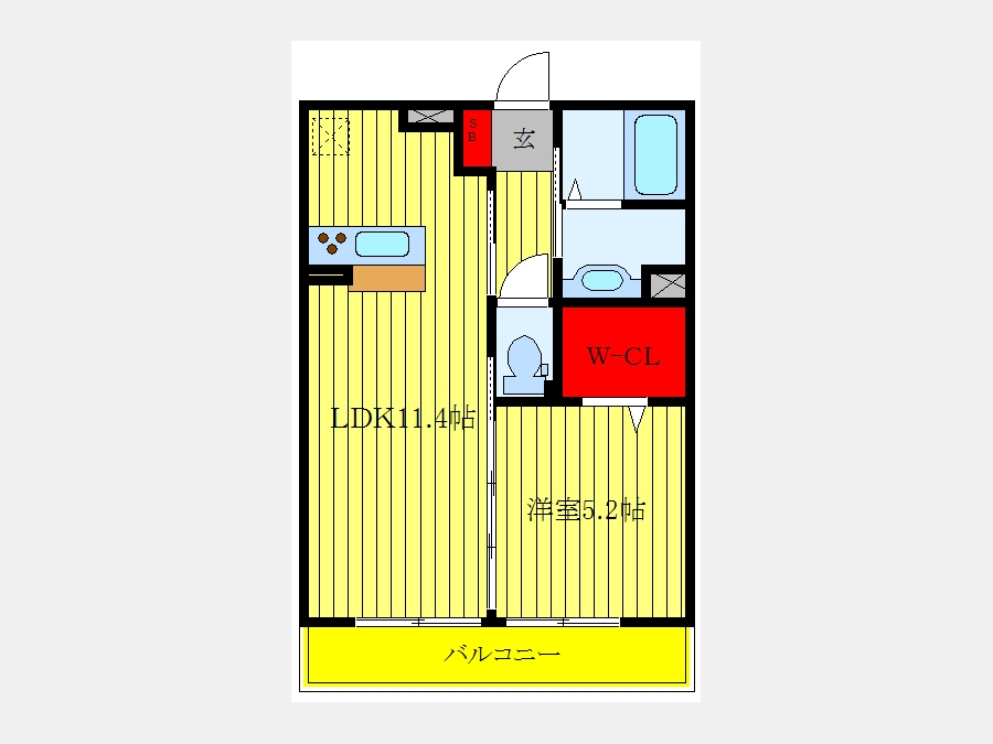 洋室 5.2 畳 LDK 11.4 畳 |
