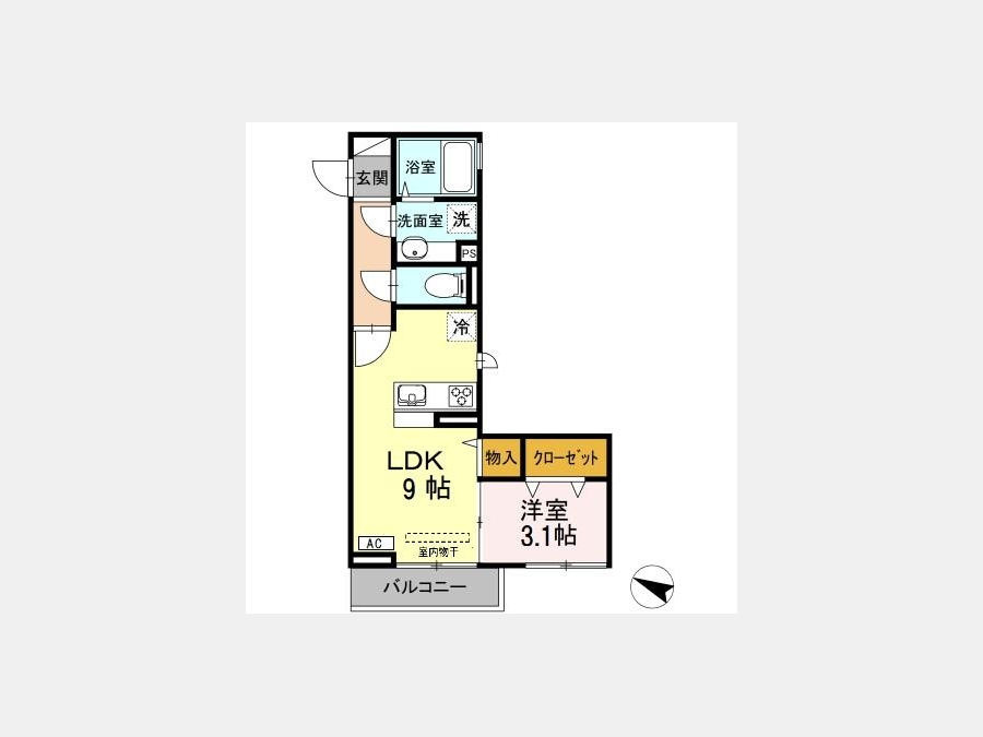 LDK 9 畳 洋室 3.1 畳 |
