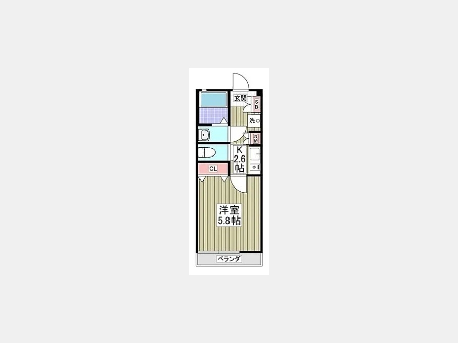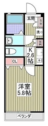 K 2.6 畳 1 室 洋室 5.8 畳 1 室 1 室 |