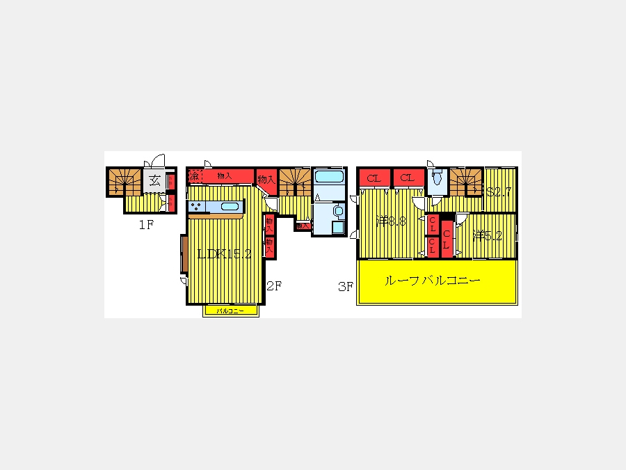 LDK 15.2 畳 3 階 洋室 8.8 畳 3 階 洋室 5.2 畳 3 階 S 2.7 畳 3 階 |