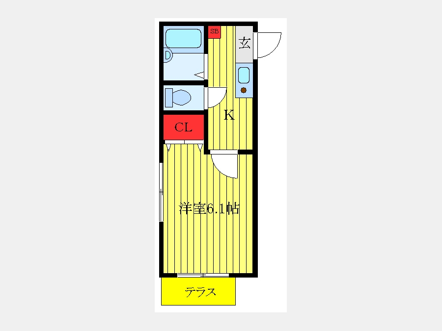 K 1.5 畳 1 階 1 室 洋室 6.1 畳 1 階 1 室 |