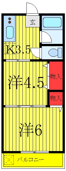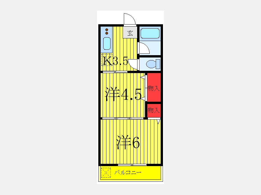洋室 6 畳 洋室 4.5 畳 K 3.5 畳 |