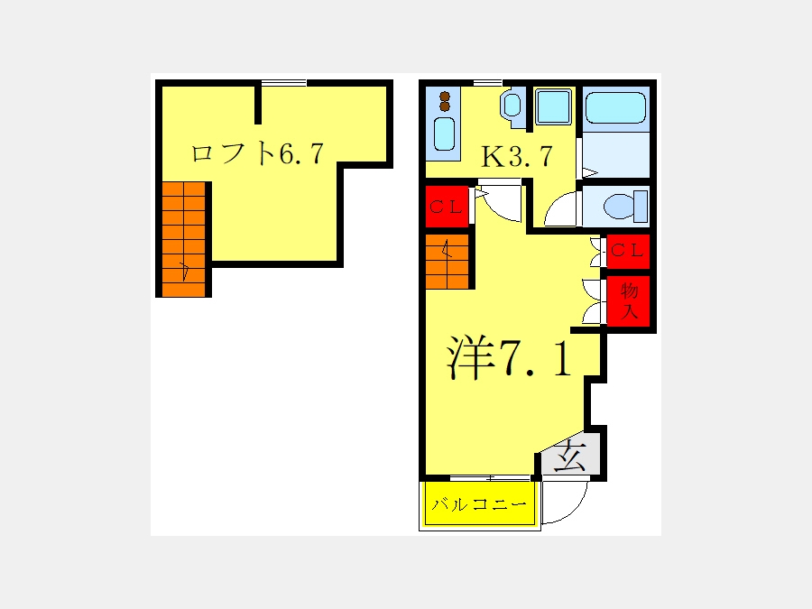 洋室 7.1 畳 K 3.7 畳 ロフト6.7帖 |