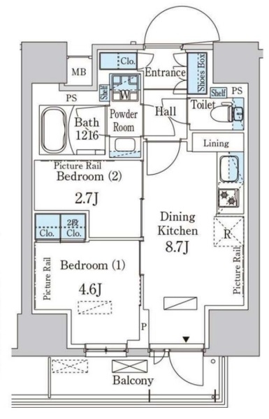 | 間取り | 2DK | 階建 | 7階/14階建 |