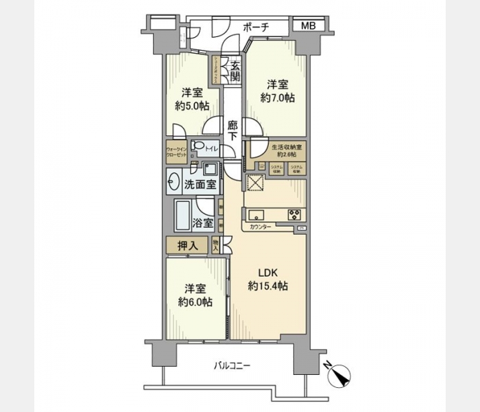 LDK 15.4 畳 洋室 7 畳 洋室 6 畳 洋室 5 畳 |