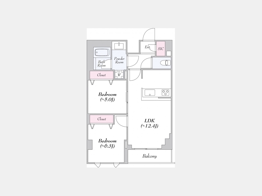 LDK 12.4 畳 洋室 6.3 畳 洋室 5 畳 |