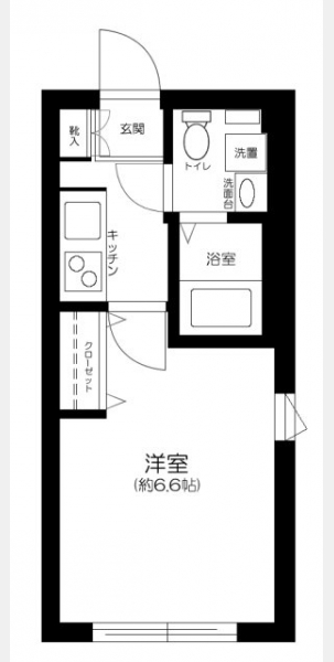 洋室 6.6 畳 1 室 K 1 室 |