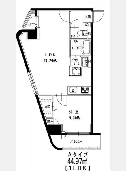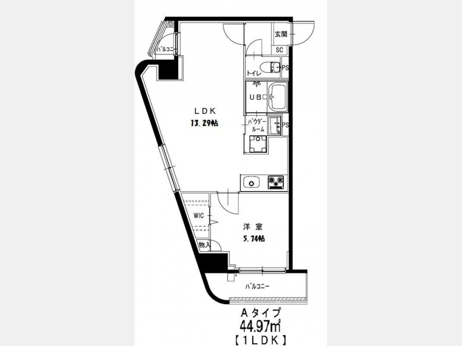 | 専有面積 | 44.97m² | バルコニー面積 | |