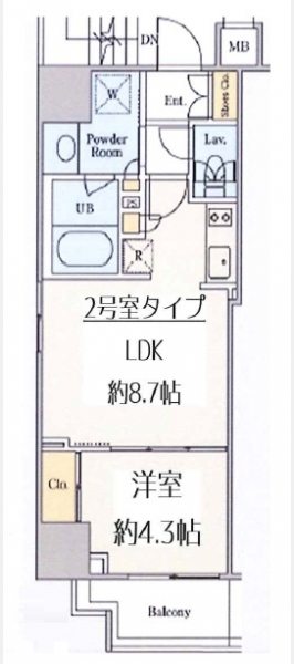 洋室 4.3 畳 LDK 8.7 畳 |