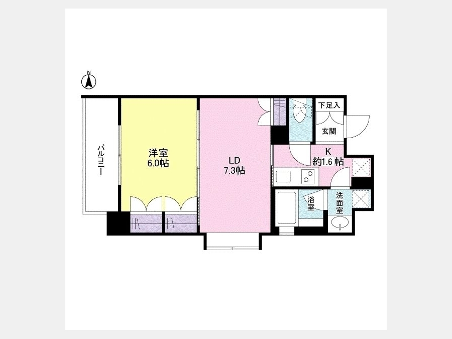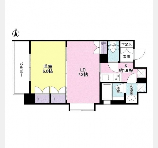 洋室 6 畳 LD 7.3 畳 K 1.6 畳 |