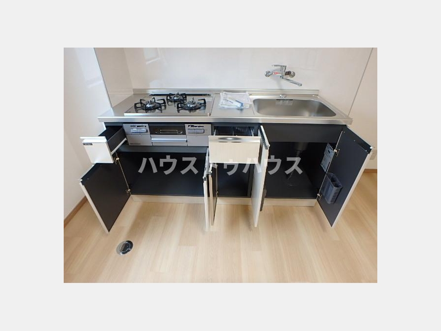 | 設備・条件 | 1階、角部屋、システムキッチン、バス・トイレ別、温水洗浄便座、室内洗濯機置き場、フローリング、エアコン、バルコニー、礼金なし、敷金なし、保証人不要、2人入居相談、駐輪場、都市ガス、低層マンション | ||