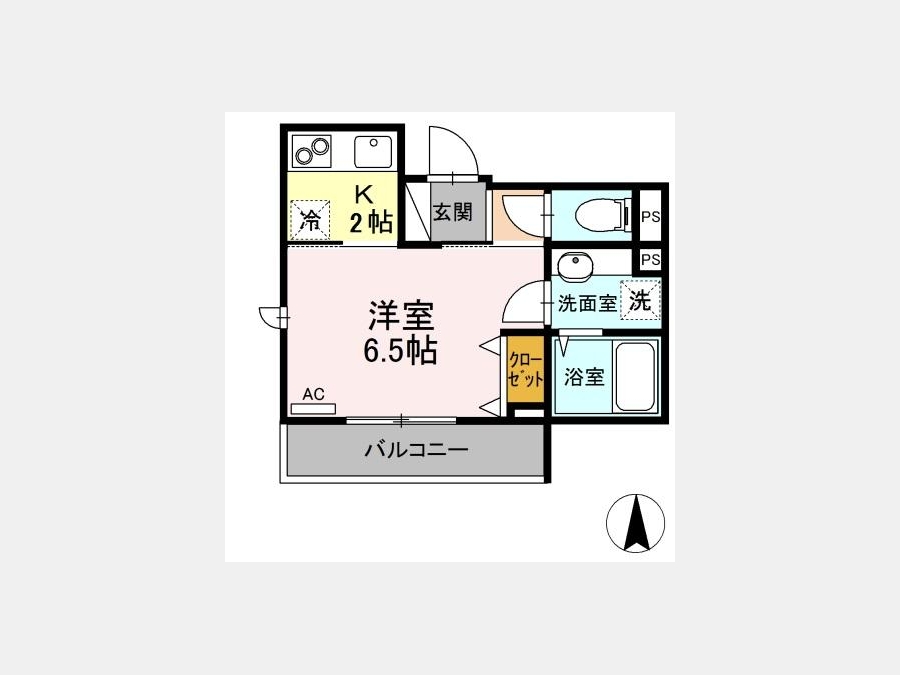 K 2 畳 洋室 6.5 畳 |