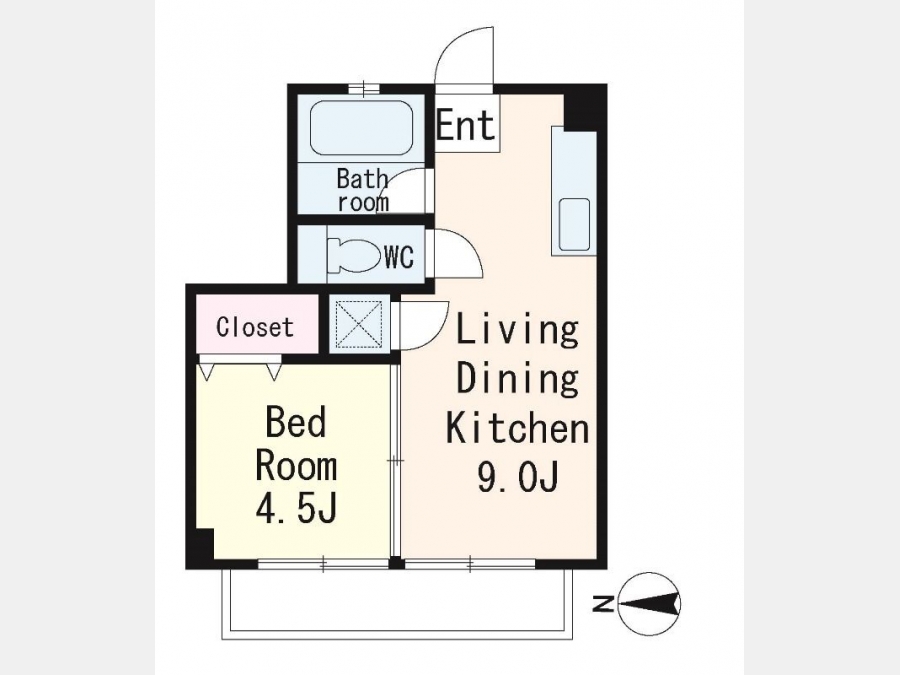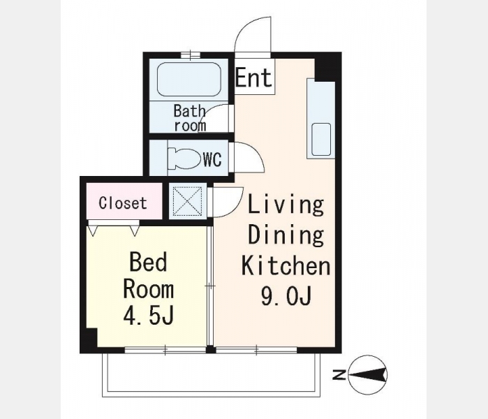 洋室 4.5 畳 1 室 LDK 9 畳 1 室 |
