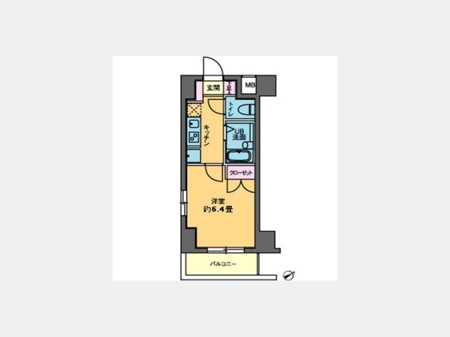 洋室 6.4 畳 1 室 K 1 室 |