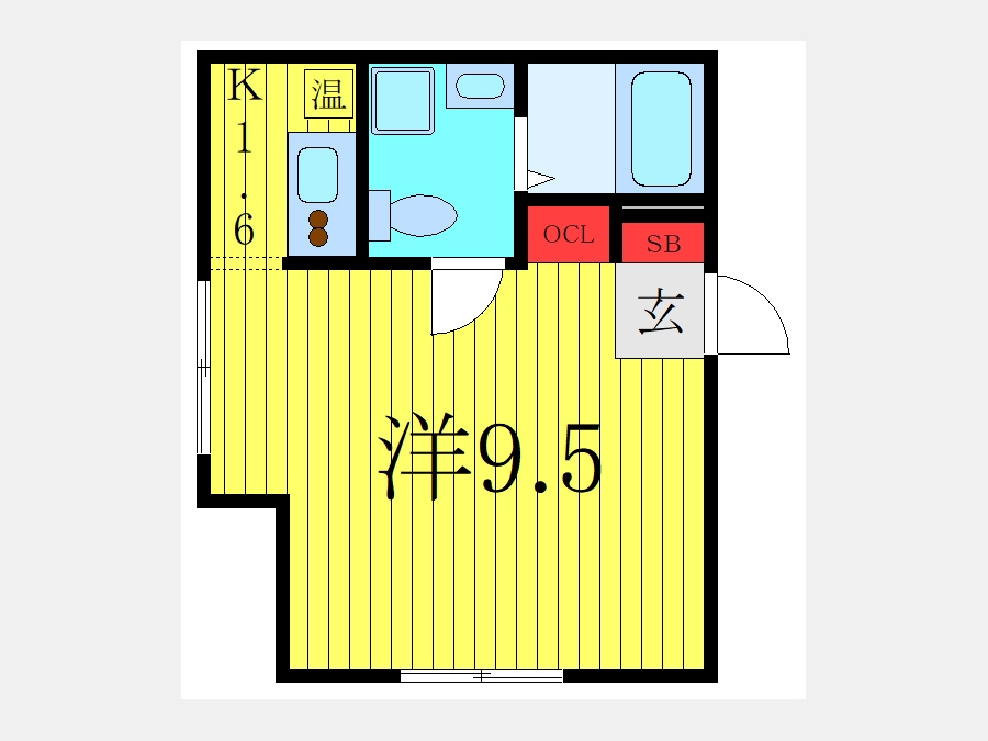 K 1.6 畳 洋室 9.5 畳 |