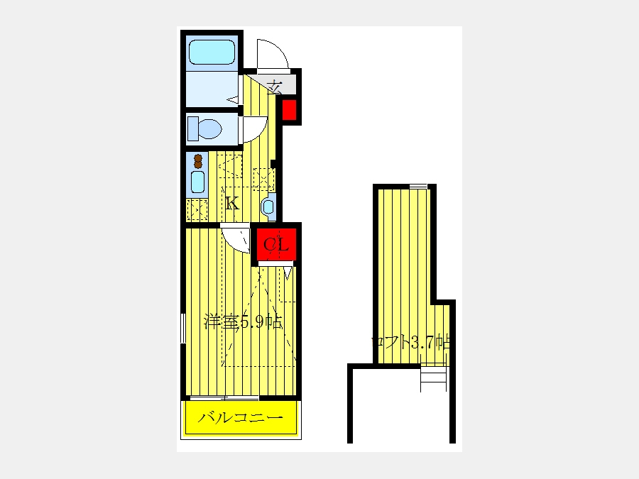 K 3 畳 洋室 5.9 畳 その他 3.7 畳 ロフト3.7帖 |