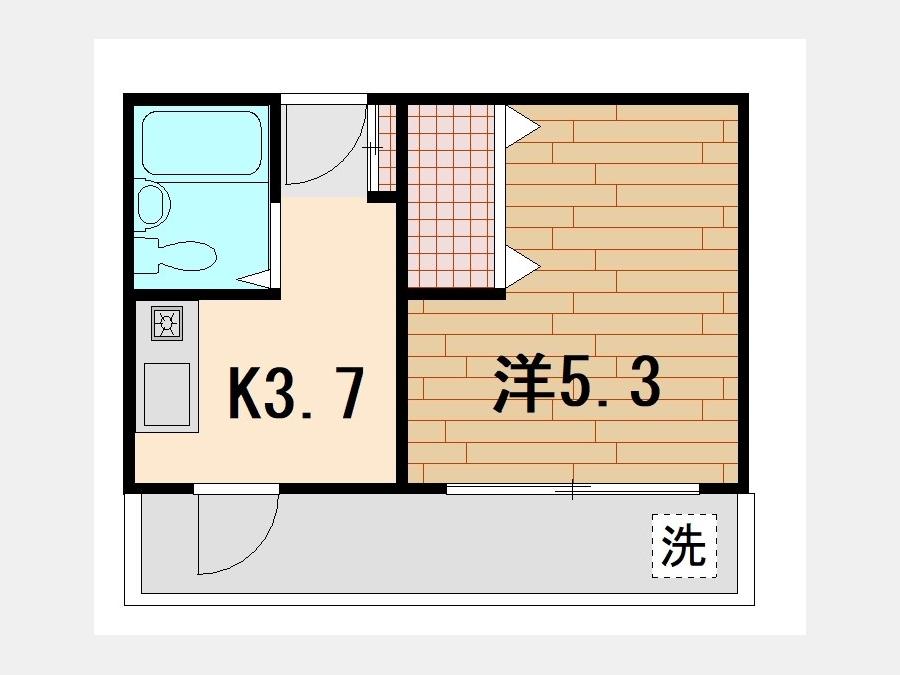 洋室 5.3 畳 K 3.7 畳 |