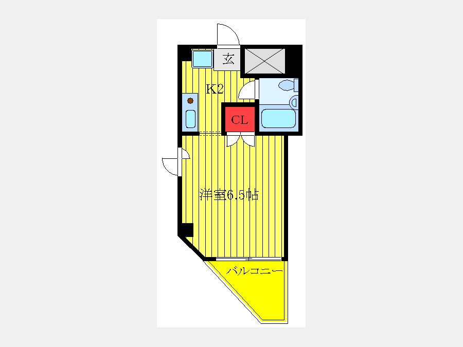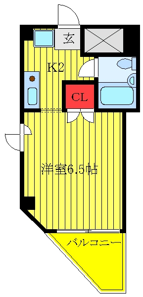 洋室 6.5 畳 1 室 K 2 畳 1 室 |